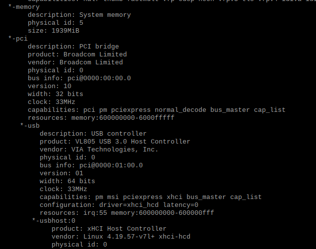 Raspberry Pi 3 B+ 에서 lspci 결과